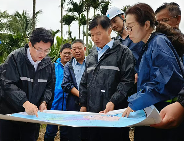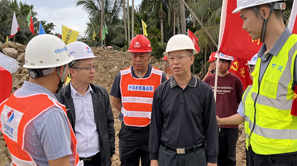 11月4日至6日,海南省委副书记、省长刘小明,副省长顾刚,及省水务厅等各级领导到九曲江防潮堤抢险救援现场调度指导险情抢救和损毁修复工作。 近日,由于连续强降雨,琼海市龙江镇尾寮村、滨滩村、博文村河堤段道路、河岸村庄护堤等出现不同程度的塌方,防汛安全形势严峻。对此,文岭项目党支部迅速响应地方政府号召,组建成立4支应急抢险小组紧急投入到险情抢救和损毁设施修复工作中。 刘小明在博鳌镇北岸村,实地查看九曲江防潮堤崩塌抢险修复进展,详细了解了现场抢险修复措施、应急物资设备调度准备、完成修复时间节点等相关信息,对抢险组排除万难、全力以赴的工作态度表示肯定。他指出,要深入贯彻习近平总书记关于防汛抗洪救灾的重要指示精神,严格落实省委工作要求,把“人民至上、生命至上”理念贯彻到抢险修复工作全过程各方面。要共克时艰、高效行动,尽最大努力加快应急物资调运,把修复工期往前赶、进度向前推,以时不我待之势高效完成堤防修复,尽早恢复防汛减灾功能,最大程度减少百姓灾害损失。要时刻保持警惕,防范潜在风险隐患,务必加强安全管理,科学有序施工。 五公司海南片区负责人表示,将加强值守和组织,在确保安全的前提下全力开展抢险救灾修复工作,持续加大抢险力度,早日完成河堤加固工作,努力降低灾害损失,全力以赴保障人民群众生命财产安全和社会大局稳定。