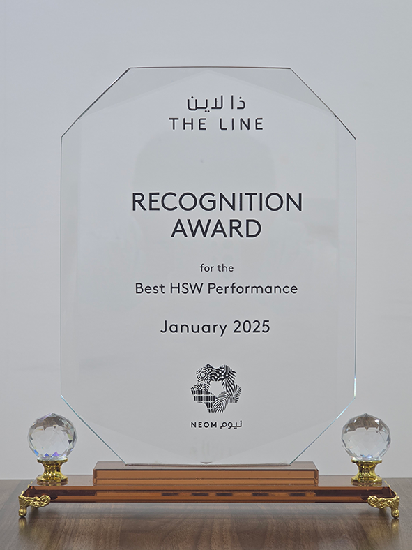 2月12日,沙特NEOM新城桩基项目荣获业主颁发的本年度首个“HSWE管理最佳承包商奖”,得到业主对项目部在健康、安全、福祉和环保(HSWE)方面的高度肯定。 THE LINE项目规模宏大,在健康、安全、福祉和环保(HSWE)方面拥有极高的标准。作为THE LINE项目的主要承包商之一,项目部认真负责,积极响应,秉持“以人为本、安全发展”的理念,不断完善健康、安全、福祉和环保管理体系,为员工创造更加安全、健康、和谐的工作环境。在安全管理方面,项目严格执行项目安全标准和国际规范,定期开展安全培训、应急演练、风险评估及现场巡查,实行安全管理“网格化”,自上而下建立全员安全生产责任制,确保施工现场实现“零事故”目标。在员工关怀方面,项目部推行“属地化+国际化”管理模式,坚持同工同酬,尊重多元文化信仰,通过设立生活委员会等组织机构关注员工体验,并在施工现场设置空调祈祷室、餐厅、休息棚及等福利设施。在环境保护方面,项目积极采用绿色施工技术和环保材料,减少碳排放和资源浪费,严格遵守NEOM规范及沙特环保法规。项目部还实施废弃物分类管理和水资源循环利用,致力于实现可持续发展目标,保护当地生态环境。 沙特NEOM新城桩基项目部将紧跟高标准、创新化和国际化的趋势,积极调整战略,确保项目在质量、HSWE和可持续性方面达到国际领先水平。
