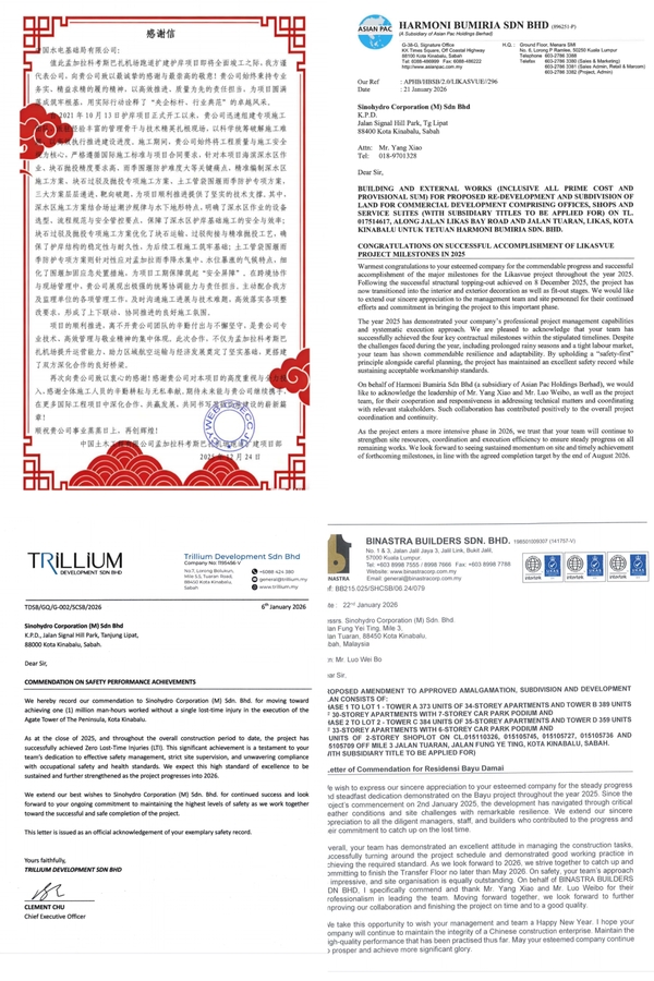 2026年伊始,国际公司海外多个项目喜报频传,凭借优质履约表现赢得业主赞誉。 孟加拉科考斯巴扎机场跑道扩建护岸项目在工程即将全面竣工之际,获得业主感谢信,信中指出,团队严格遵守国际施工标准与项目合同要求,保障深水区护岸基础施工的安全与效率,诠释“央企标杆、行业典范”卓越风采。 艾阁高级公寓(Agate Tower)项目在安全管理上树立了标杆,项目不仅在2025年成功保持“零损失工时伤亡”记录,目前更稳步迈向一百万安全工时的重大里程碑,其严谨安全标准得到业主的高度认可。 在保障安全的基础上,沙巴里卡斯景观综合体项目在进度履约上取得了重大突破 。项目于2025年12月顺利实现结构封顶,并克服了多雨季节和劳动力短缺等重重挑战,圆满达成了全部四个年度关键合同里程碑。 沙巴风雨亭公寓项目在攻坚克难中展现极强的韧性,项目团队通过科学现场组织成功扭转进度落后的局面,在抢抓工期的同时,依然保持高标准的安全管理和施工组织,赢得业主真诚嘉奖。 在新春来临之际,这一封封表扬信串联起公司在海外深耕细作的丰硕成果,不仅肯定各项目团队过去一年的辛勤付出,也进一步擦亮“中国基础”海外品牌形象。 【责编:狄聪进】 |